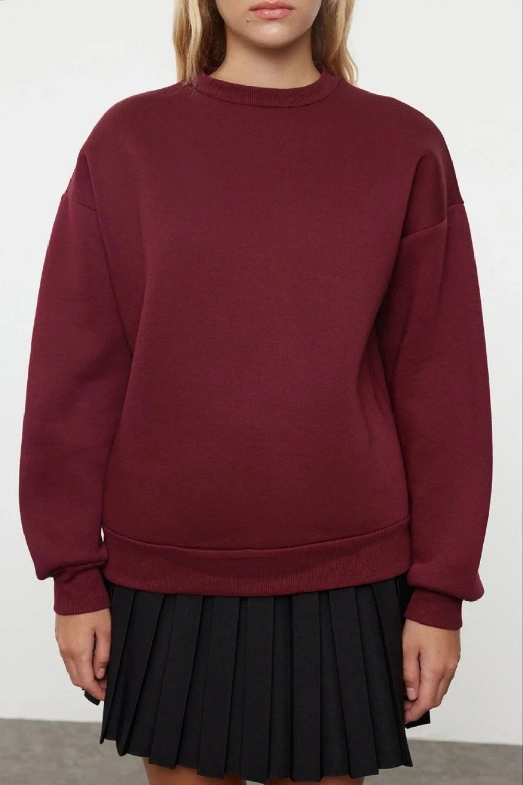 3 İplik şardonlu Bisiklet Yaka Sweatshirt Bordo, günlük stilinizde şıklığı ve konforu bir arada arayan kadınlar için ideal bir seçim olacak.