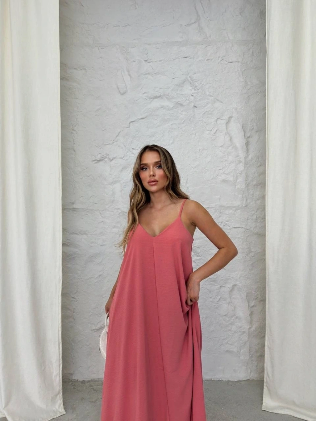 Aerobin uzun elbise, feminen ve şık bir görünüm sunar. Siyah düğme detaylarıyla hareketlendirilmiş olan bu pembe elbise, günlük giyimden özel davetlere kadar geniş bir kullanım alanı sunar.