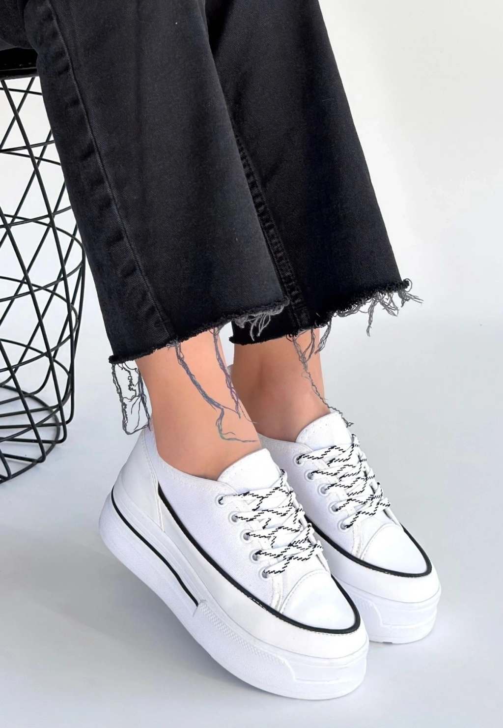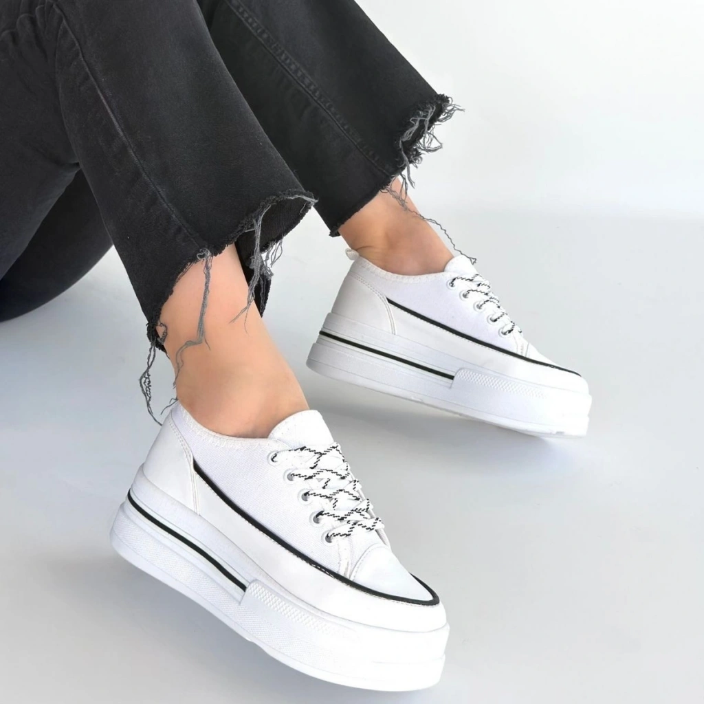 Dalen Beyaz Keten Bağcıklı Spor Ayakkabı