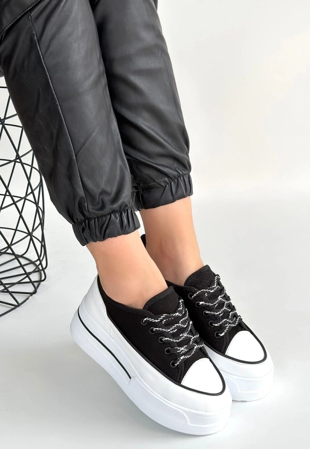 Dalen Siyah Keten Bağcıklı Spor Ayakkabı