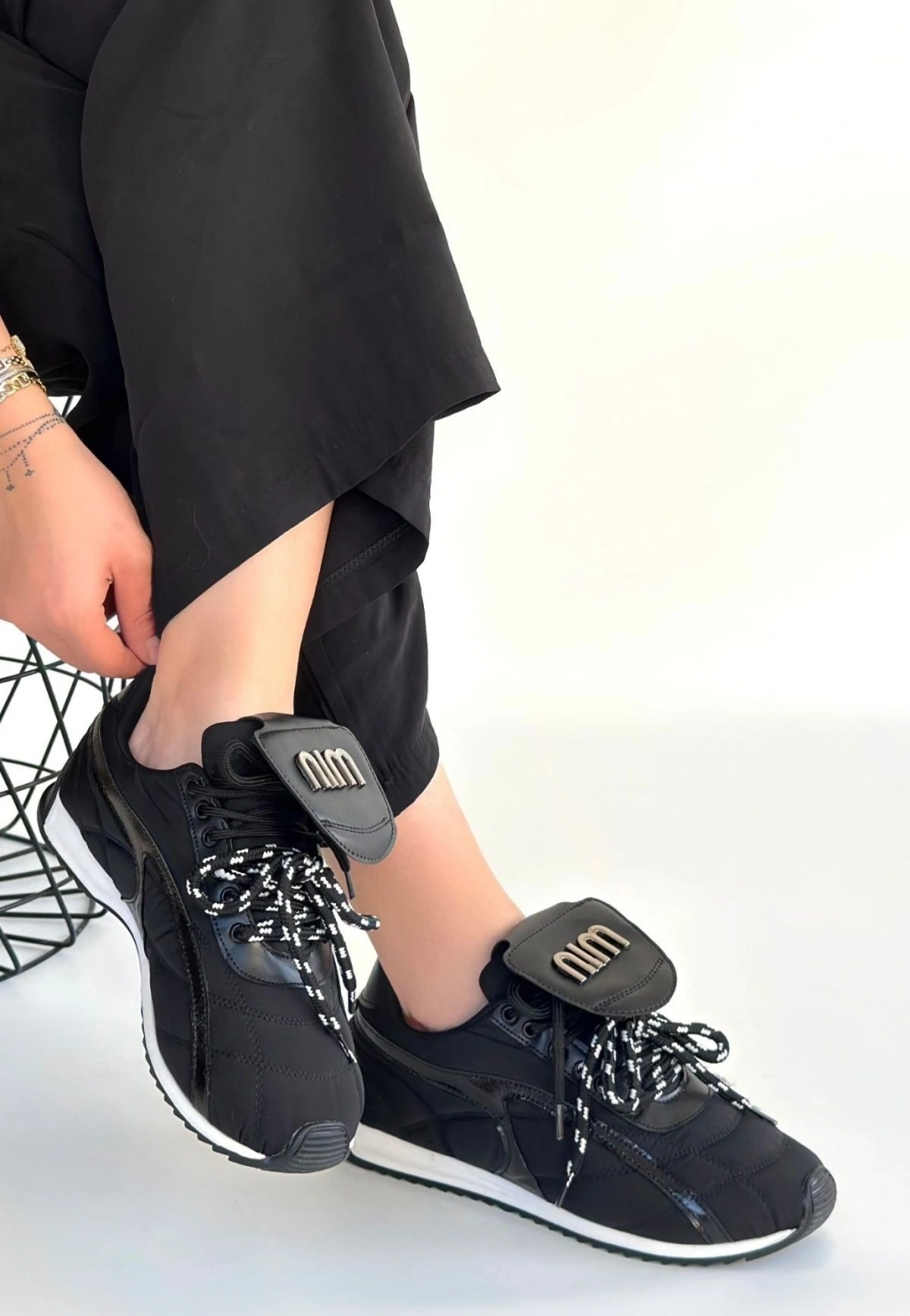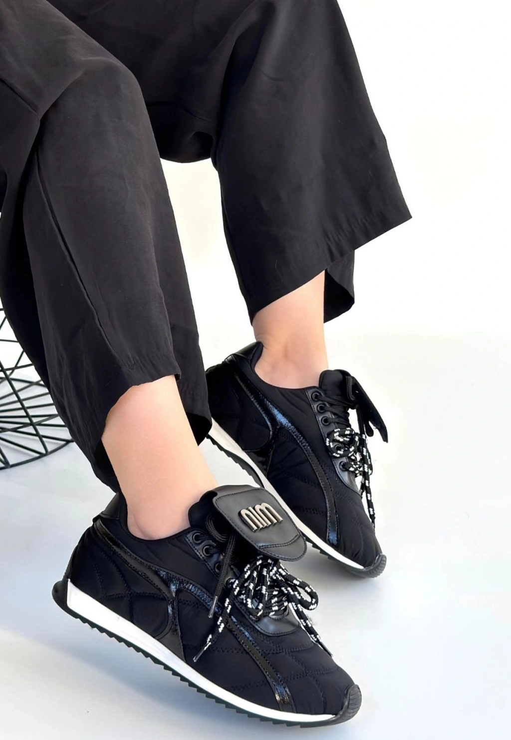 Dissa Siyah Cilt Bağcıklı Paraşüt Detaylı Spor Ayakkabı