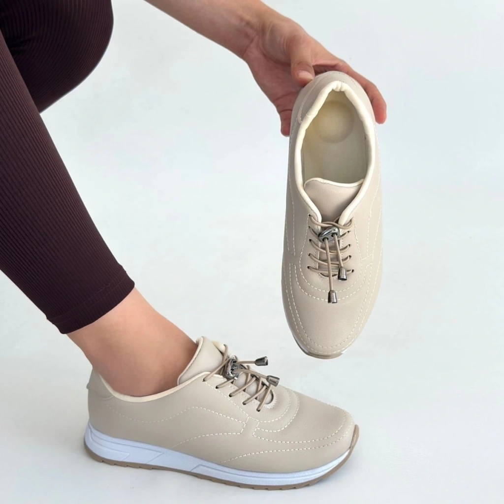 Finna Bej Cilt Bağcıklı Spor Ayakkabı