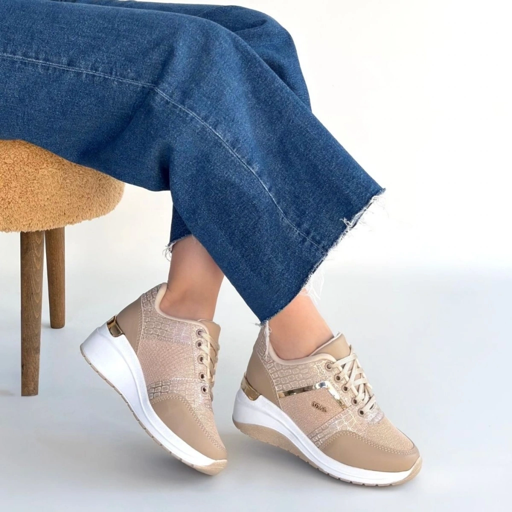Geja Bej Cilt Bağcıklı Spor Ayakkabı