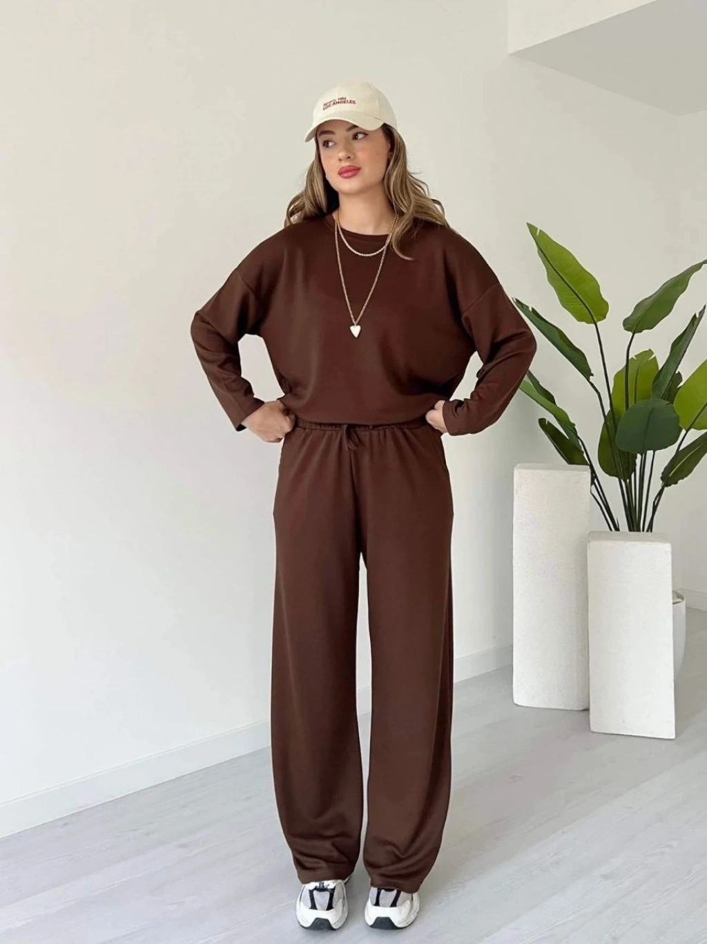 Kollu modal takım kahve