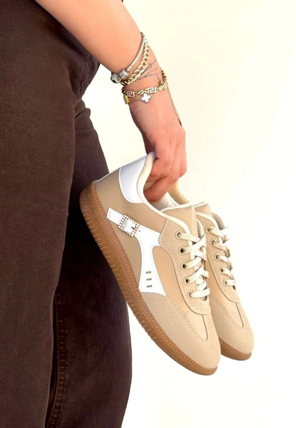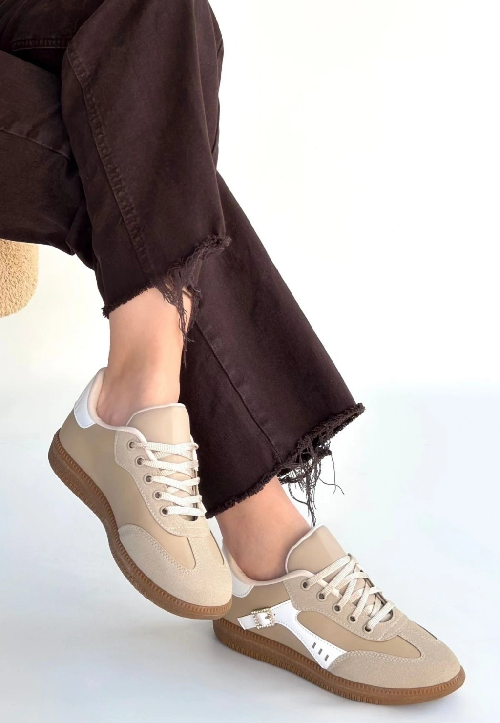 Mier Bej Cilt Bağcıklı Spor Ayakkabı