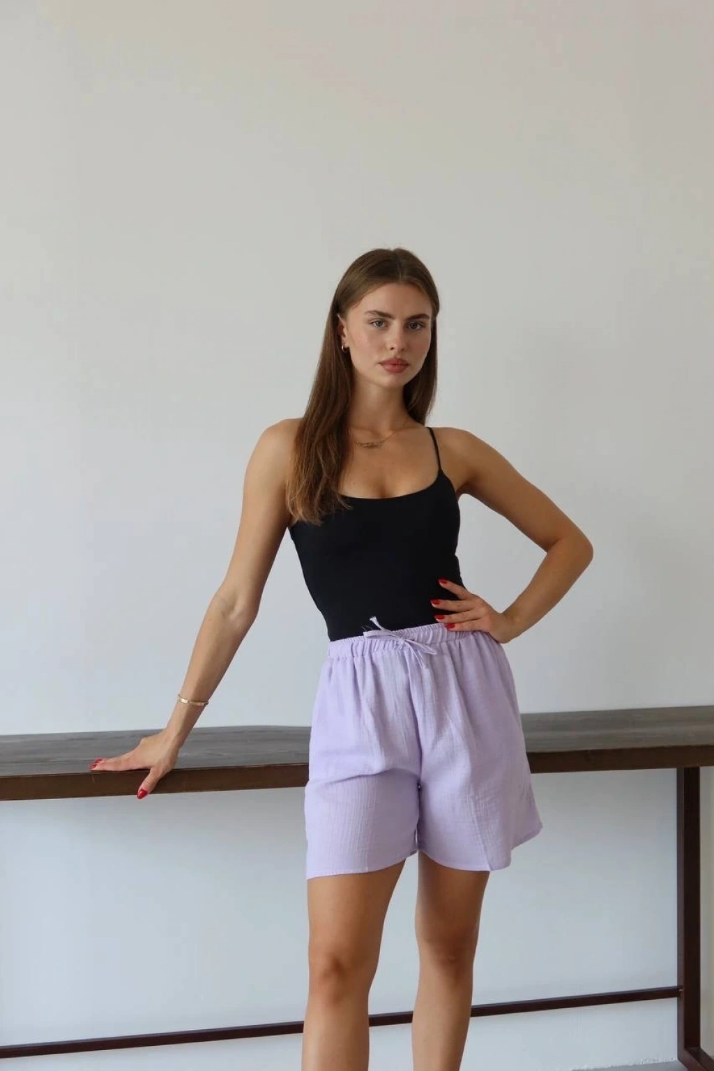 Müslin Kumaş Şort Bağcıklı Lila PT, gardırobunuzun vazgeçilmez parçası olmaya aday! Rahatlığı ve şıklığı bir arada sunan bu şort ile şıklığı yakalayacaksınız.