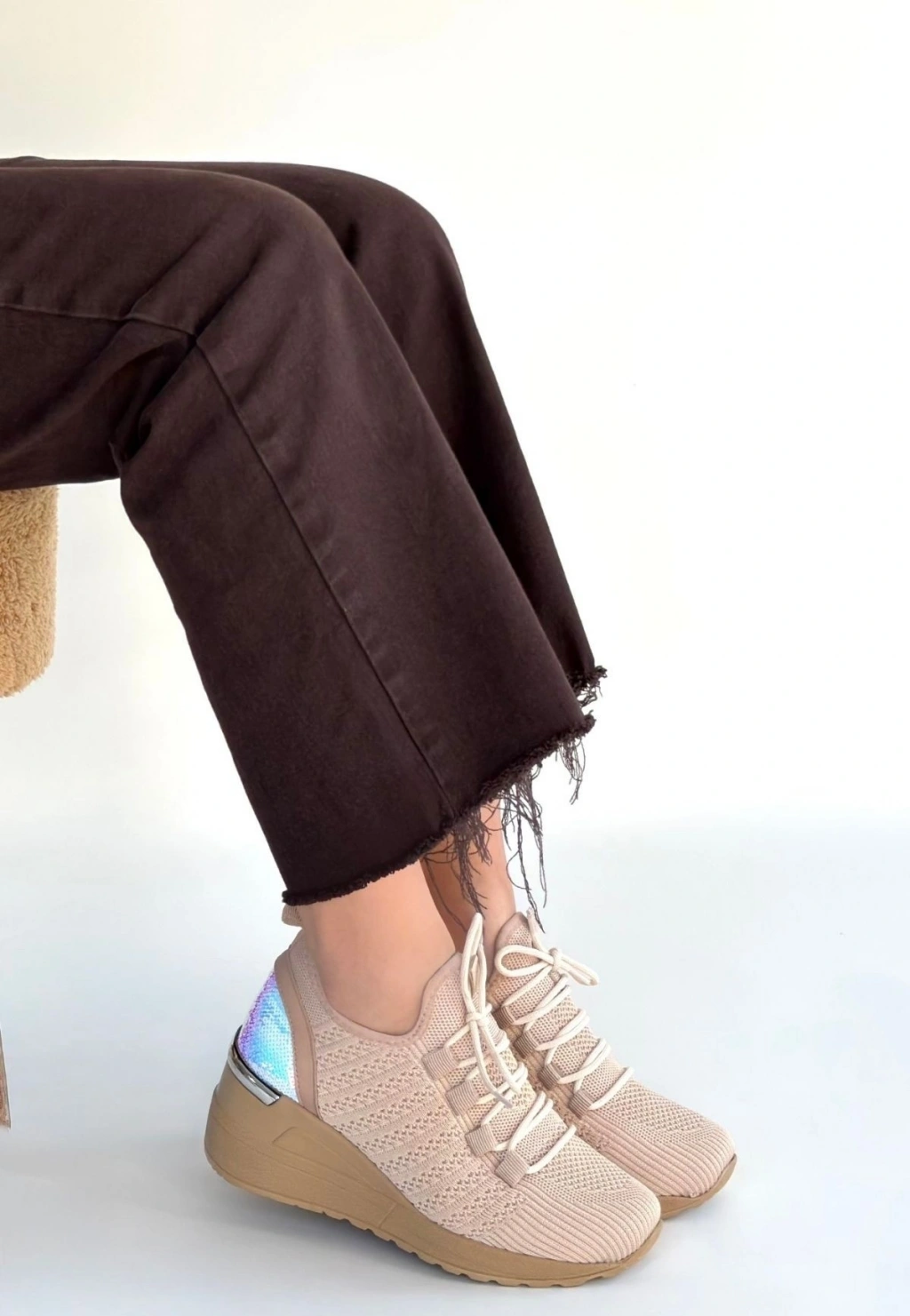 Weor Bej Triko Bağcıklı Spor Ayakkabı